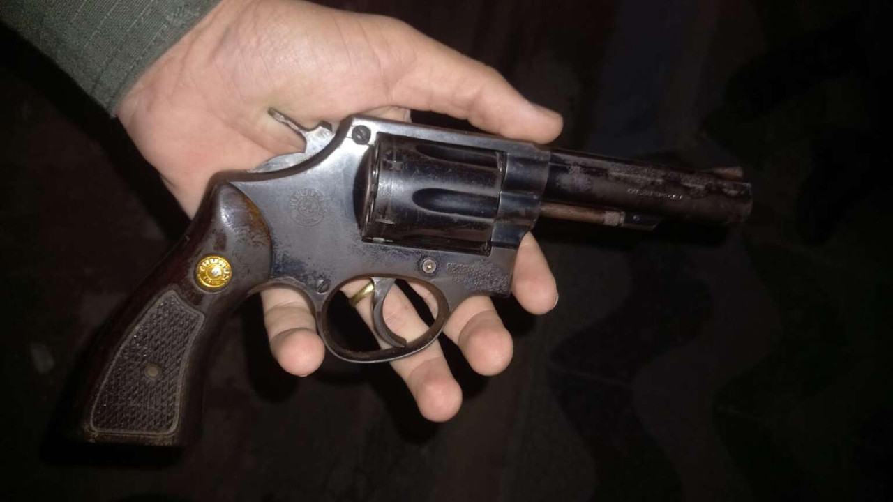 Durante a revista pessoal, foi encontrado um revólver calibre .38 municiado com seis munições. Além disso, no bolso do adolescente foram localizadas mais sete munições e uma porção de maconha.