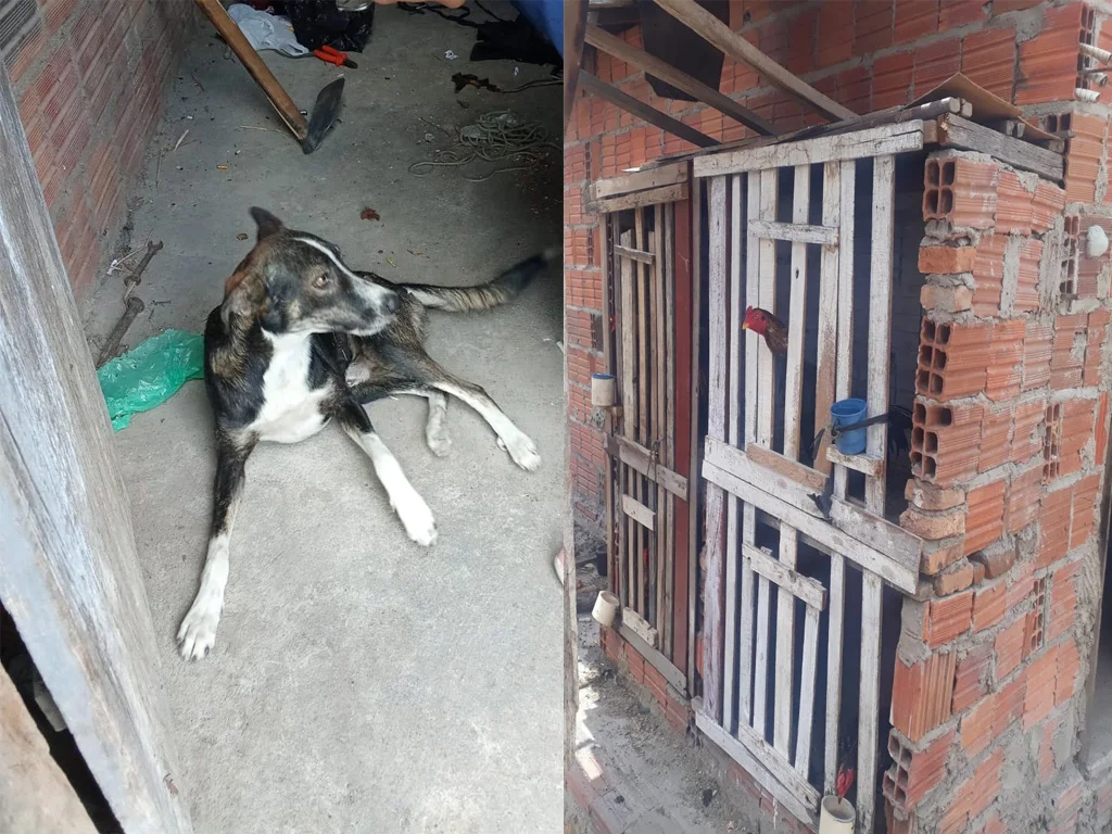 local, foram identificados 20 galos utilizados em rinhas de briga e três cães